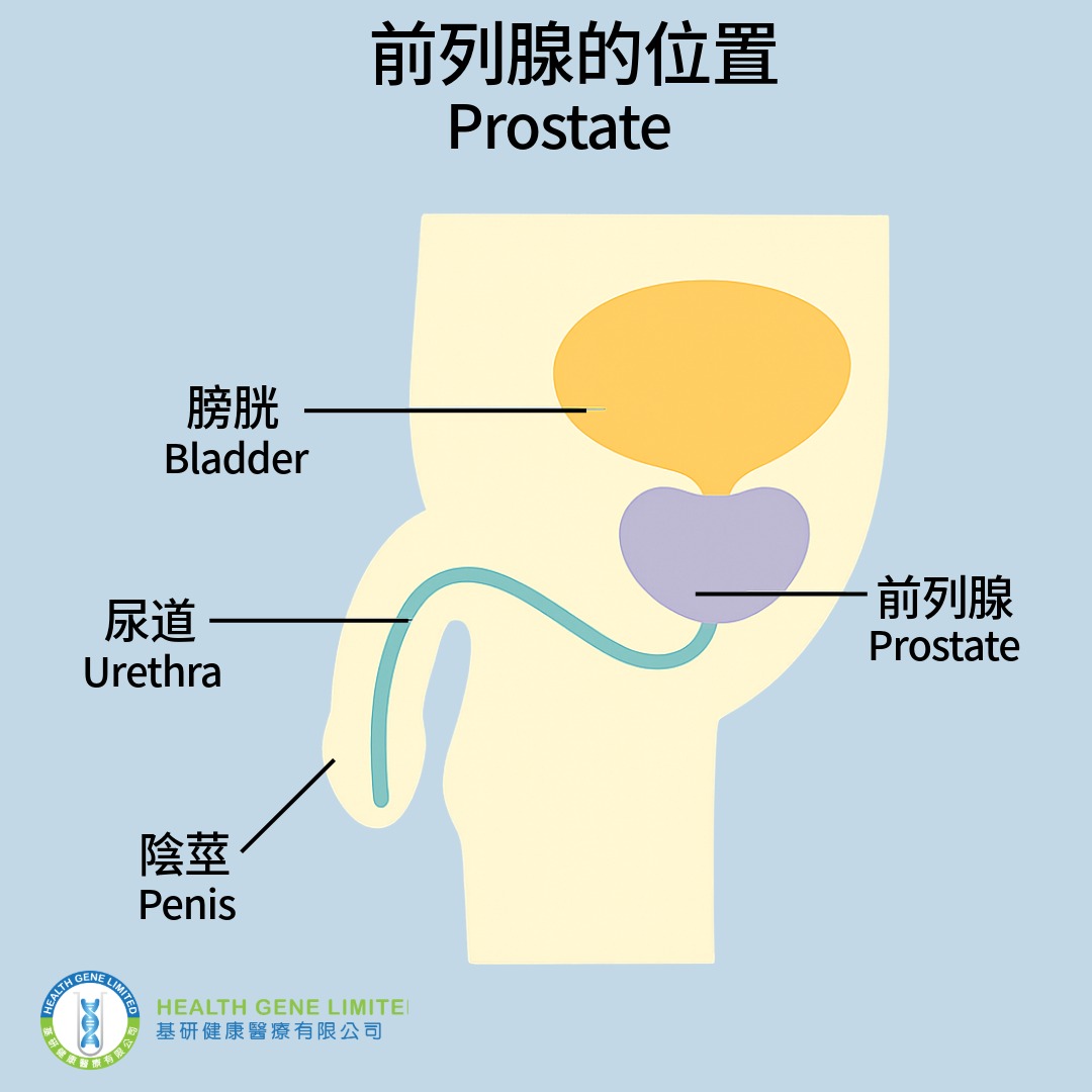 前列腺位於膀胱下方、包圍尿道的一個男性特有腺體。當前列腺內的細胞出現基因異常並開始不受控制增生,就可能形成惡性腫瘤,這種情況稱為「前列腺癌」。癌變的前列腺細胞可逐漸侵入前列腺外、擴散至淋巴、骨骼或其他器官,影響排尿、骨骼系統或整體健康。