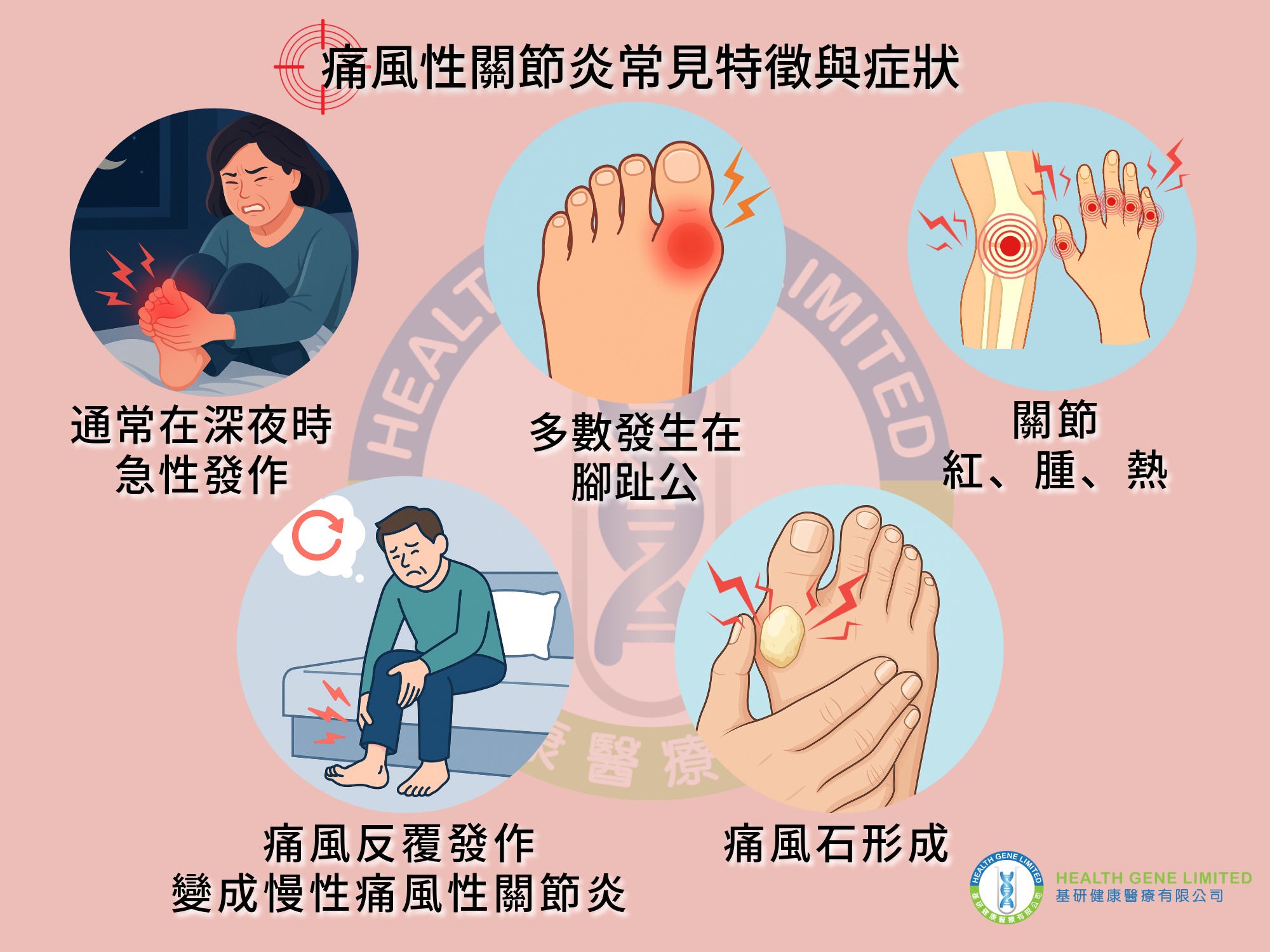 痛風是一種與高尿酸血症有關的關節炎。當血液中的尿酸濃度過高,尿酸鹽結晶會積聚在關節處,引起急性而劇烈的疼痛與紅腫發炎反應,這種情況就是痛風性關節炎。